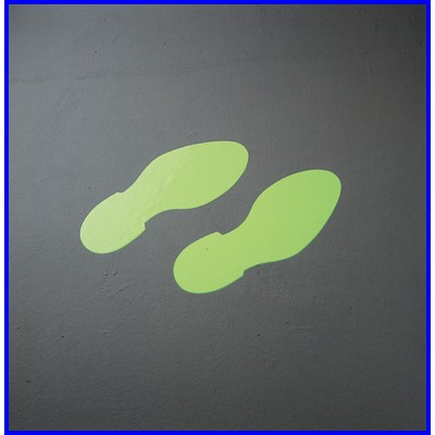 Znacznik w kształcie stopy wykonany z antypoślizgowego materiału o właściwościach fotoluminescencyjnych.