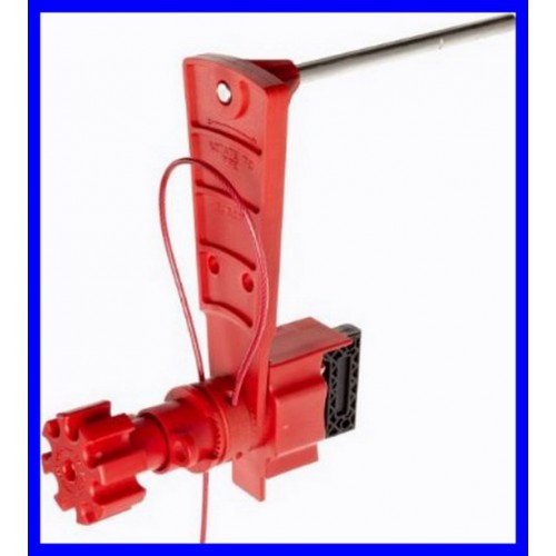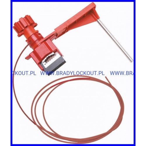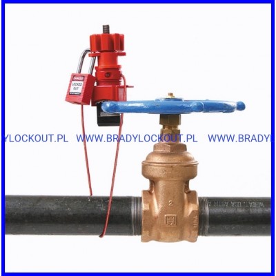 Brady nr 051392 - Duża uniwersalna blokada zaworu z linką w osłonie i ramieniem blokującym