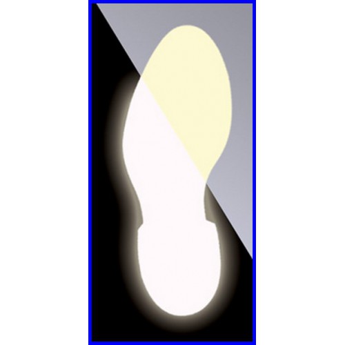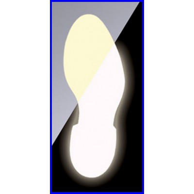 Znacznik w kształcie stopy wykonany z antypoślizgowego fotoluminescencyjnego materiału.