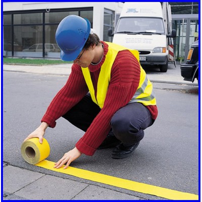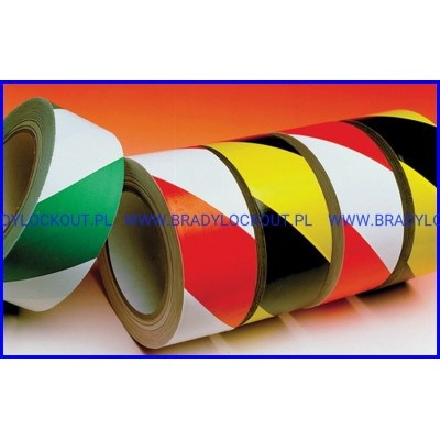 Samoprzylepna taśma w ostrzegawcze pasy do znakowania filarów, słupów, krawędzi ścian, obramowań drzwi, wind, niskich stropów itp. Taśmy BHP z matowego tworzywa PVC mogą być także wykorzystywane do znakowania ciągów komunikacyjnych w miejscach o niewielkim natężeniu użytkowania.
