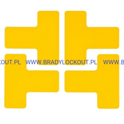 Taśma podłogowa samoprzylepna Brady Toughstripe w postaci znaczników narożnych 'T' jest dostępna w kilku kolorach: