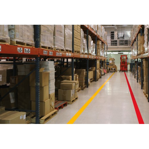 Winylowa taśma samoprzylepna dedykowana do oznaczania hal produkcyjnych i obiektów przemysłowych o niewielkim natężeniu ruchu oraz do oznaczeń pionowych.