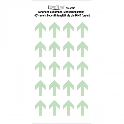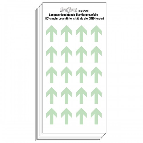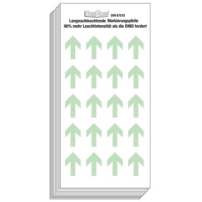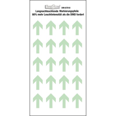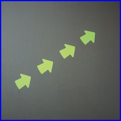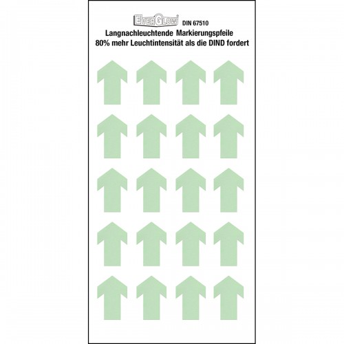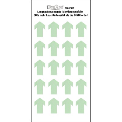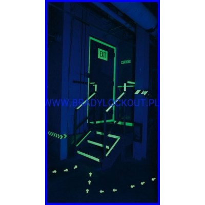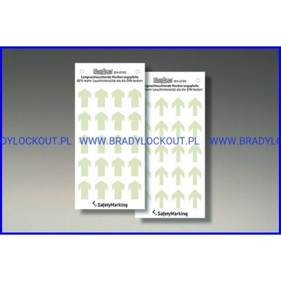 Strzałki fotoluminescencyjne Brady o dużej żywotności oraz wysokiej sile świecenia - 5 minutowe naświetlanie o wartości 1000 luksów wystarcza na ponad 10 godzin świecenia.